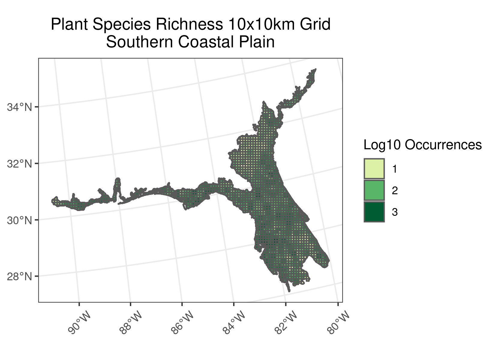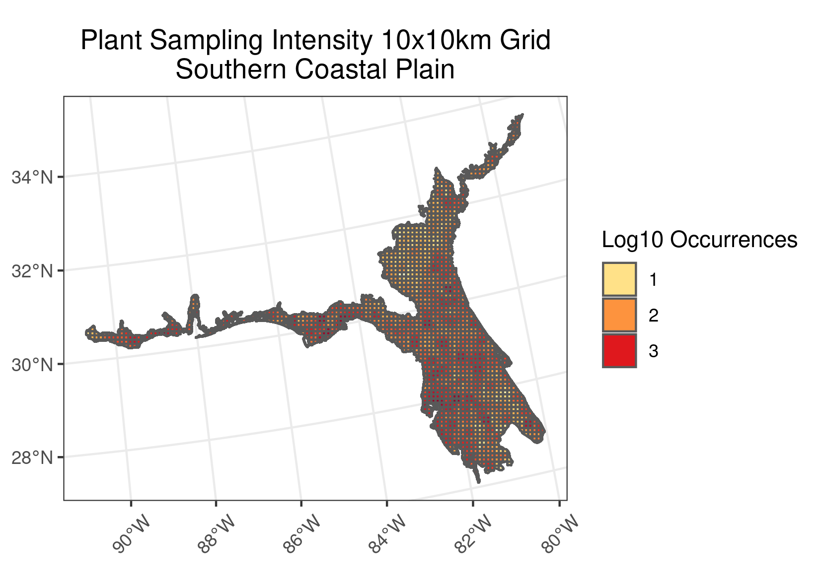 Location: Extends from South Carolina and Georgia through much of central Florida, and along the Gulf coast lowlands of the Florida Panhandle, Alabama, Mississippi, and eastern Louisiana.